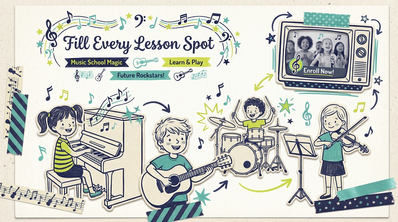 Enrollment bumps during key seasons. Running targeted campaigns before back-to-school and new year windows can increase enrollment by filling spots that might otherwise go empty. Even a handful of new students per campaign can significantly impact annual revenue, since music students tend to stay enrolled for years.
