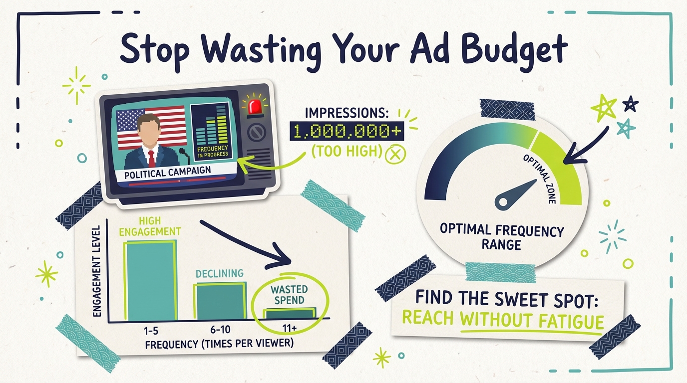 Here's the thing: frequency that high doesn't just waste money. It can flip undecided voters against you. When someone sees your face for the fifteenth time during a single football game, they're not thinking about your platform. They're thinking about how much they want you to go away.