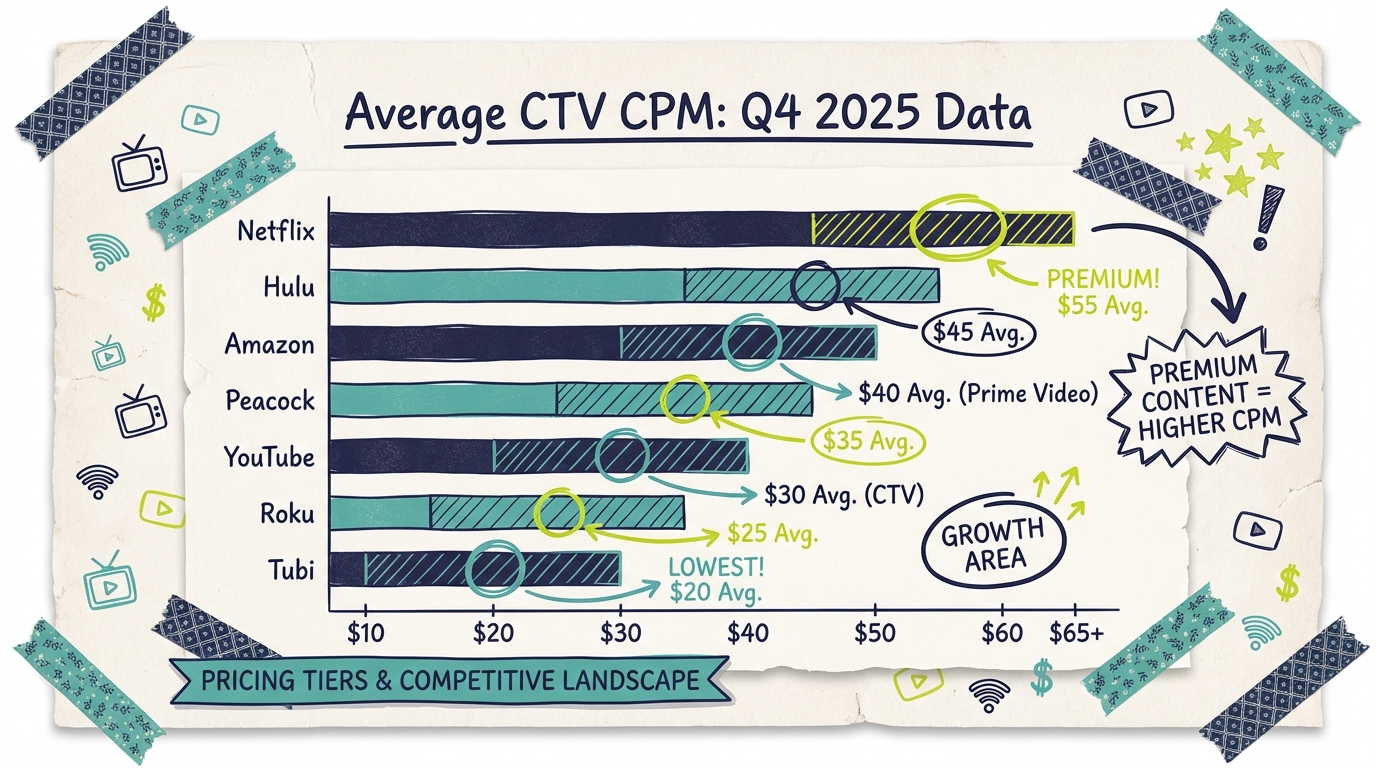 The biggest story in Q4 2025 is the continued compression of mid-tier CPMs. As more streaming services compete for advertiser dollars, the pricing gap between premium platforms (Netflix, Hulu) and free ad-supported services (Tubi, Pluto TV) has narrowed. This competition benefits advertisers at every budget level.