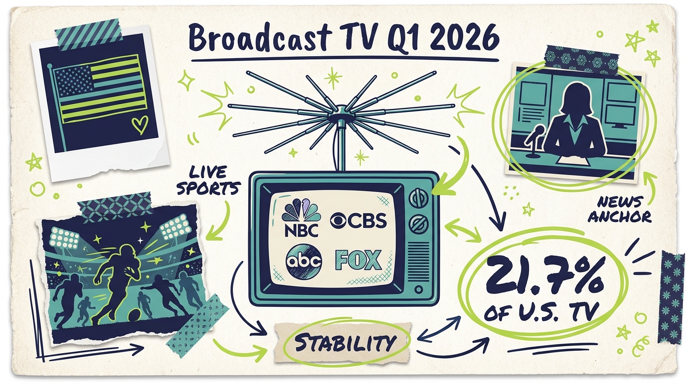 Broadcast's 21-22% share in Q1 2026 reflects a category that has largely defended its position despite intense streaming competition. The audience that prefers broadcast (older, habit-driven, live-event oriented) has stuck with broadcast. The corporate structures that own broadcast networks (NBCUniversal, Paramount, Disney's ABC, Fox) have kept broadcast strategically important even as they invest in streaming.