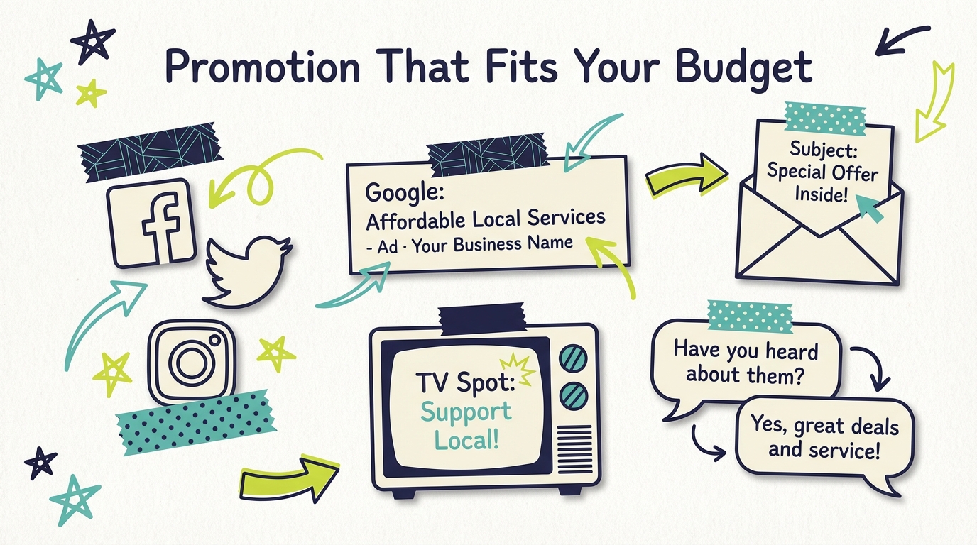 Start with the free fundamentals: Google Business Profile, reviews, social media presence, and referral systems. Add low-cost digital tactics as resources allow. Layer in paid promotion strategically, testing channels before committing significant budget.
