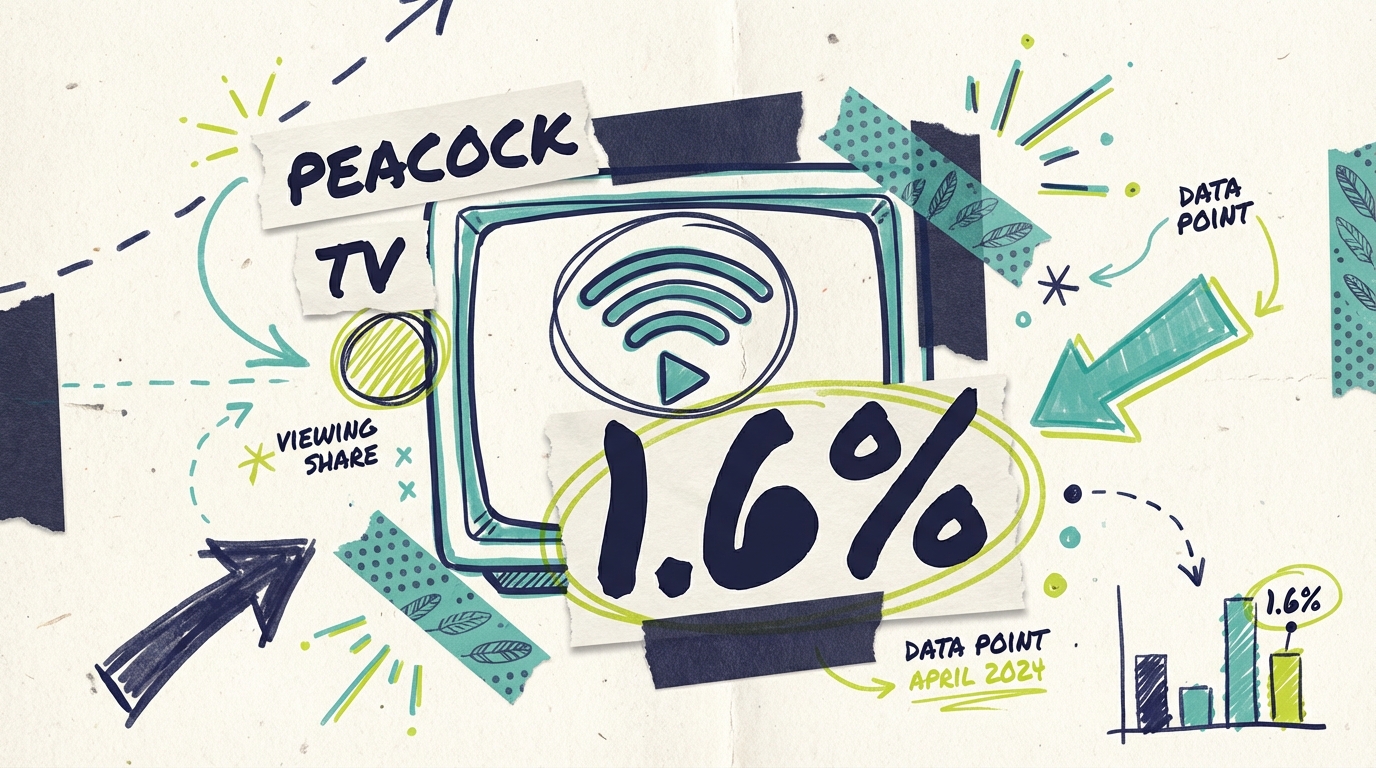 Peacock holds approximately 1.6% of total TV viewing according to Nielsen Gauge data, rising to 2.0% on Sundays when NFL games air. While smaller than Netflix or YouTube, Peacock's sports-engaged audience represents premium advertising inventory.