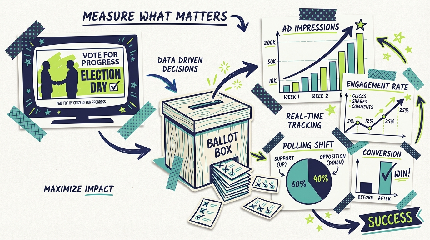When should a campaign start measuring TV effectiveness? Start measurement infrastructure before the first ad airs. Establish polling baselines, set up Google Trends monitoring, and configure website analytics at least 2 weeks before launch. Then measure continuously throughout the campaign, not just at the end. Early measurement allows mid-campaign optimization that improves results.