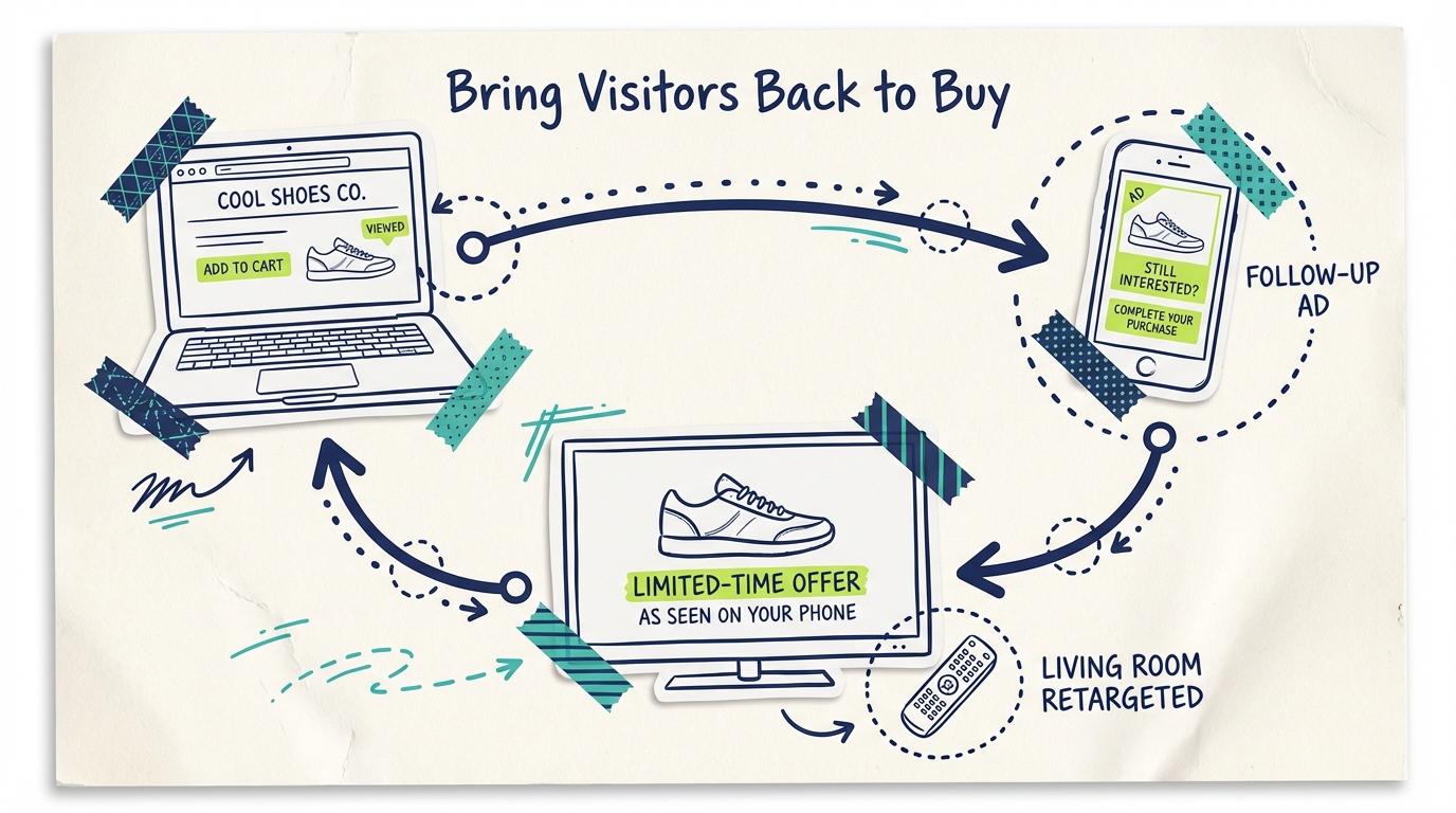 Can I retarget people who visit my physical store? Not directly through pixel tracking, but there are workarounds. If you collect email addresses at the point of sale, you can upload those lists for retargeting on social media and display networks. Some platforms also offer geofencing, which targets people who've been physically near your business location. CTV platforms can match household-level data with in-store visits for certain integrations.