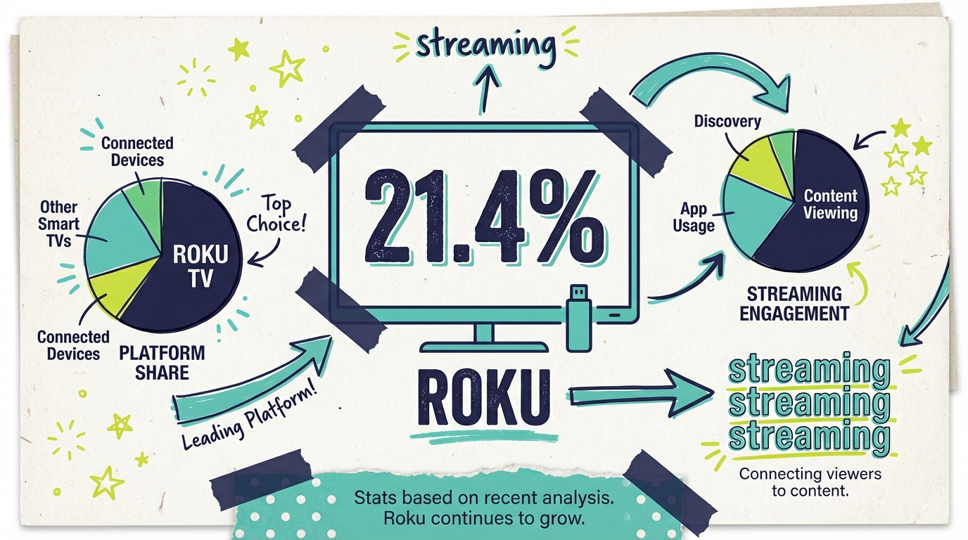 Understanding Roku's position requires distinguishing between two related but different metrics. The 21.4% figure represents all streaming watched through Roku devices (smart TVs with Roku operating system, Roku streaming sticks, and Roku boxes), regardless of which streaming service is being watched. The 2.8% figure specifically measures viewing of The Roku Channel, Roku's own free ad-supported streaming service. Both metrics matter for advertisers, as Roku offers advertising across its platform (home screen, screensavers) and within The Roku Channel's content.